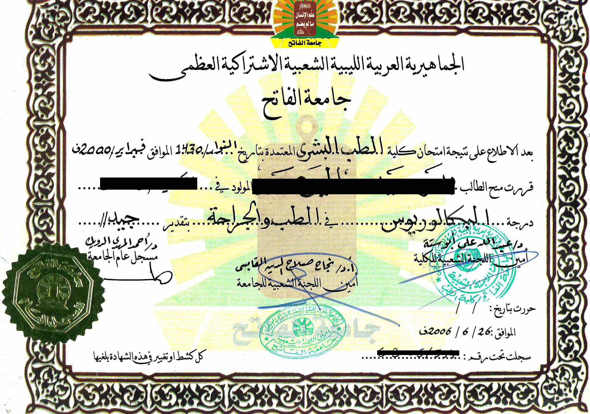 Option 2: Contact the university you attended and ask that your official degree certificate and transcripts be mailed to you in a sealed envelope. Then mail or bring the envelope to our office. The envelope must not be opened and must contain the signature and seal of the university.