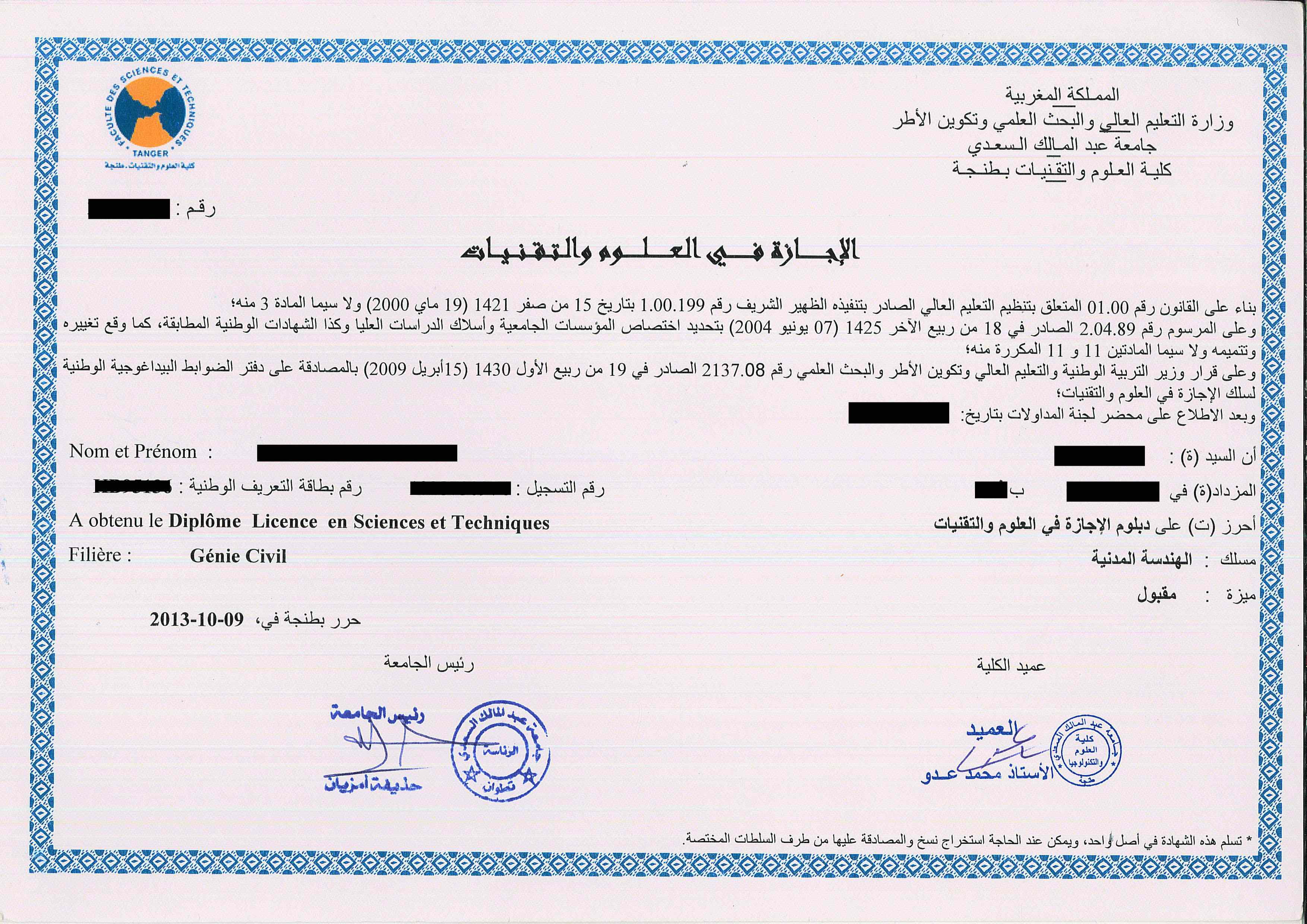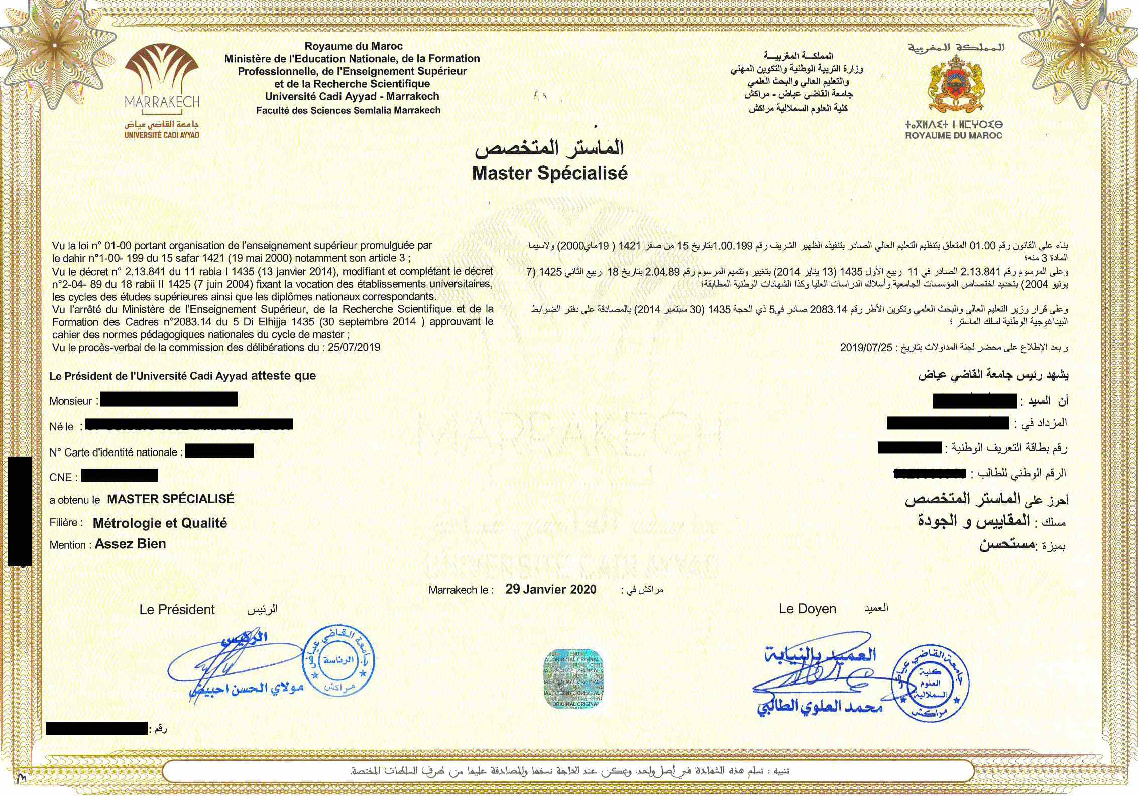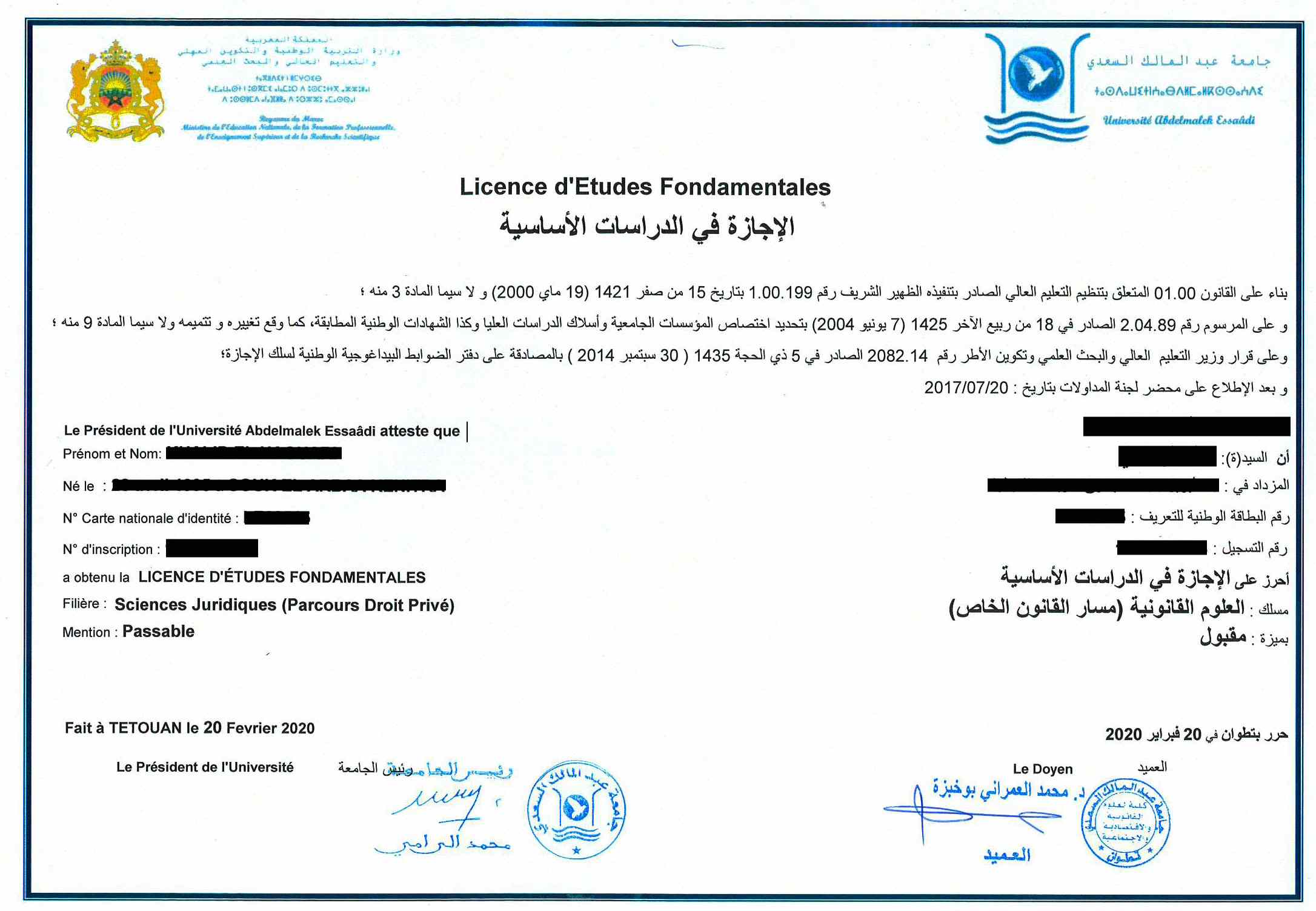 Option 2: Mail or bring your ORIGINAL Diploma and Relevé de Notes for all years of study to our office. The results should be issued in French or Arabic and be issued by the university. (Scans, faxes, photocopies and notarized copies are not considered original documents and cannot be accepted).