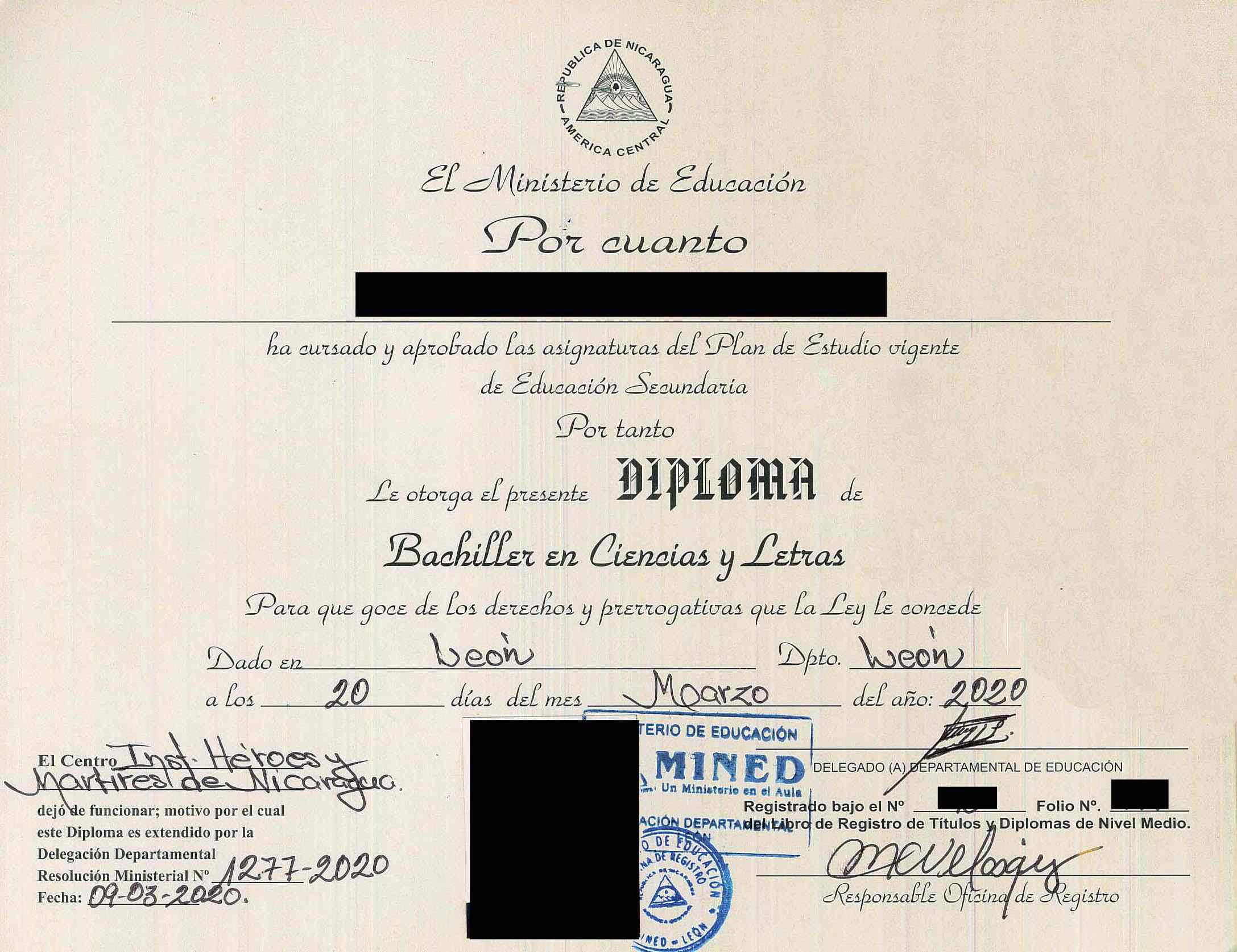Diploma de Conclusión de Estudios de Ciclo Diversificado de Bachillerato