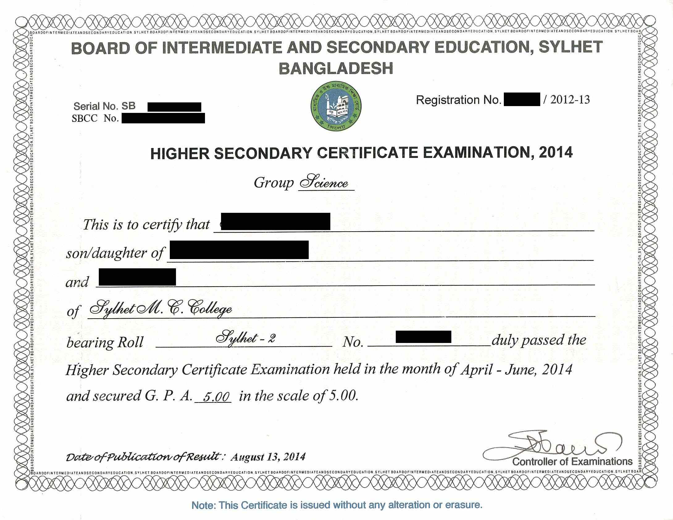 Higher Secondary Certificate (HSC)