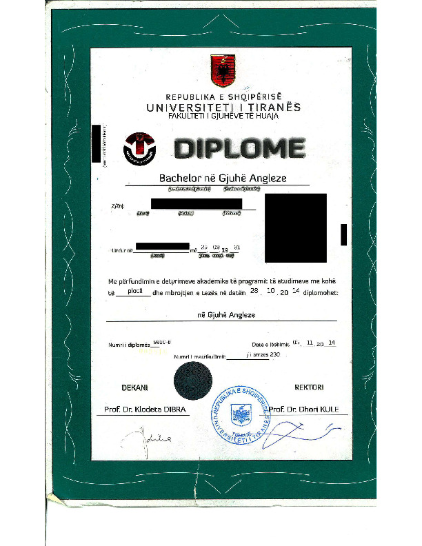 Diplomë e Nivelit të Parë/Diplomë Bachelor