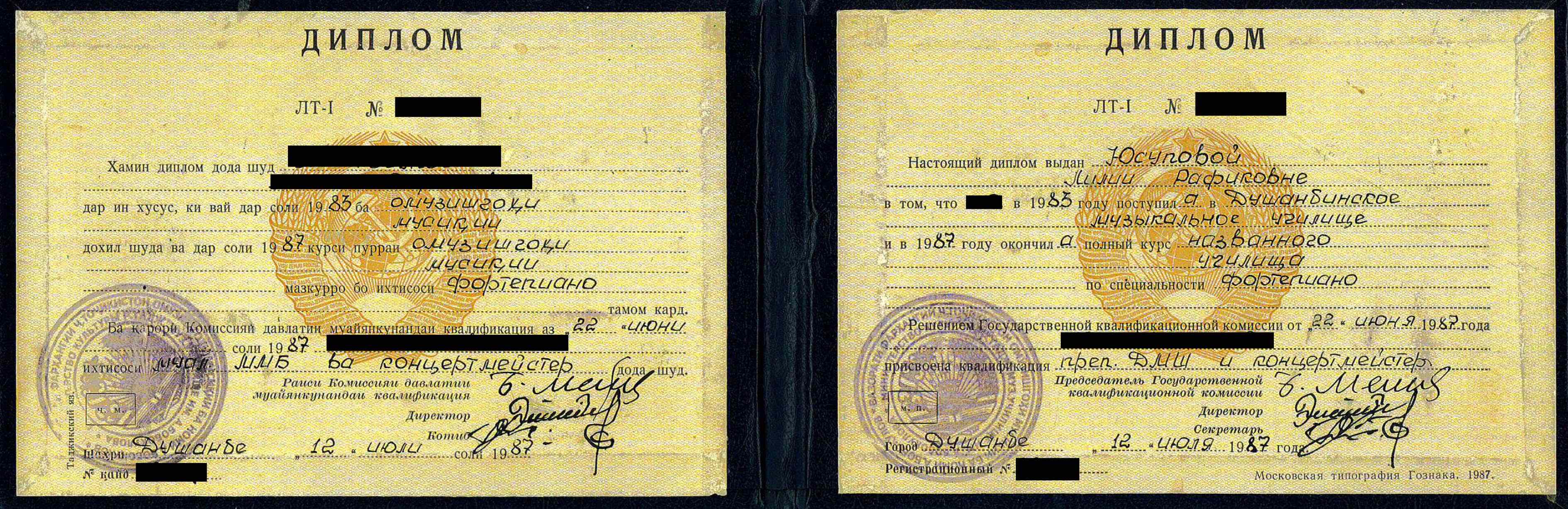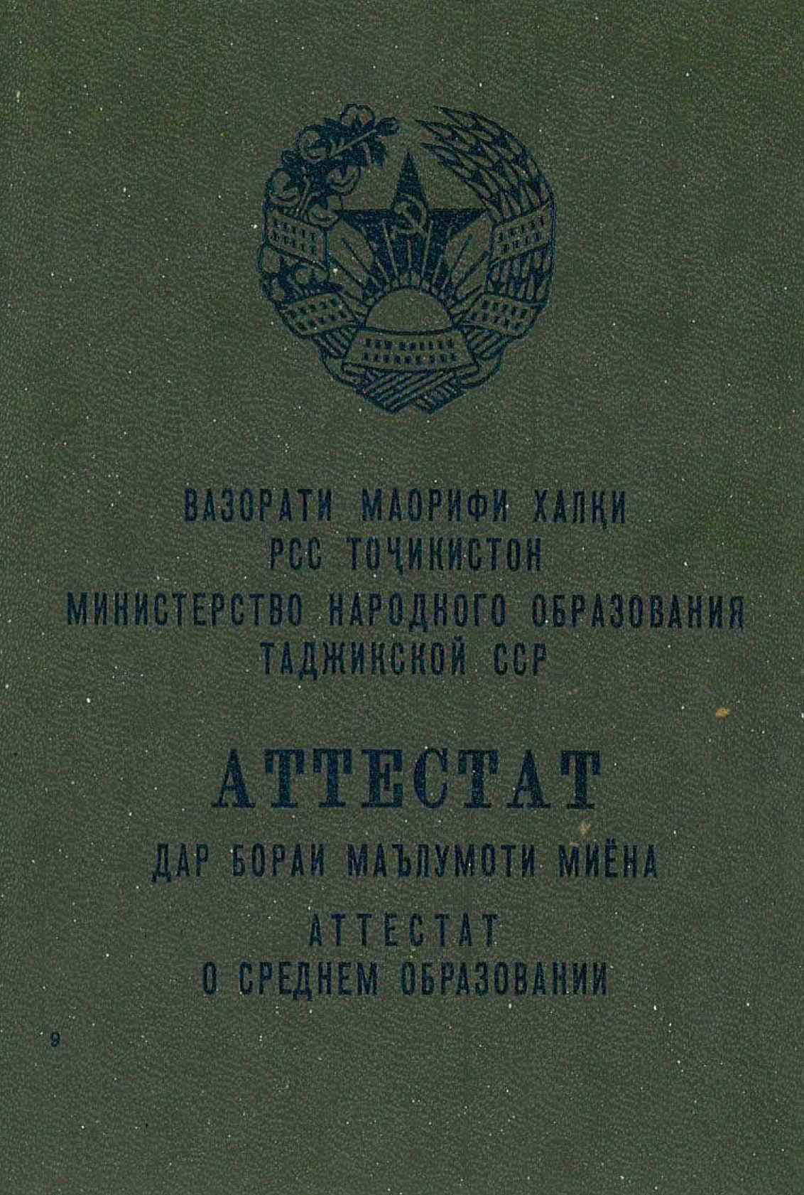 Аттестат дар бораи маълумоти миёна / Аттестат о среднем образовании (СССР)