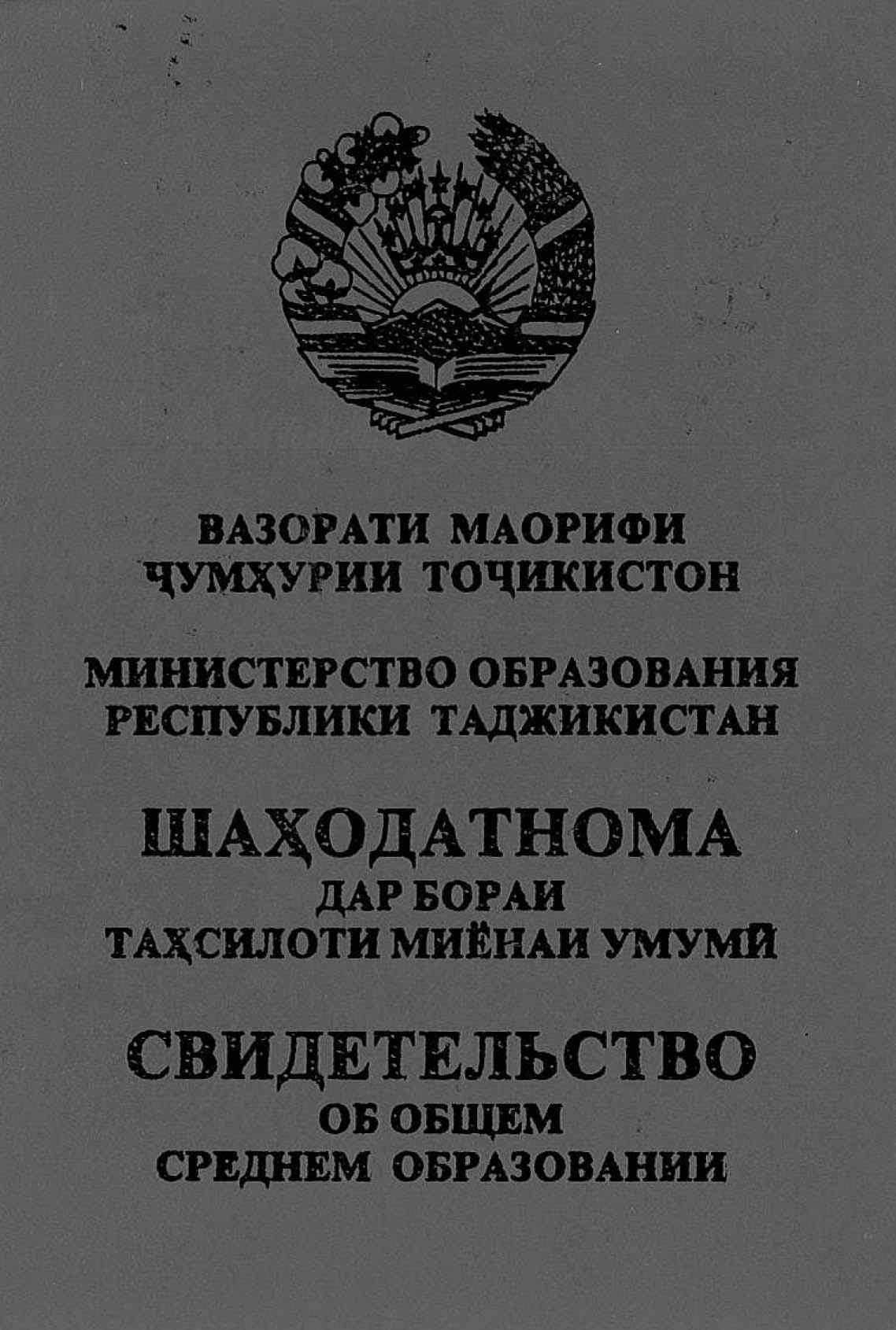 Шаҳодатнома дар бораи таҳсилоти миёнаи умумӣ / Свидетельство об общем среднем образовании