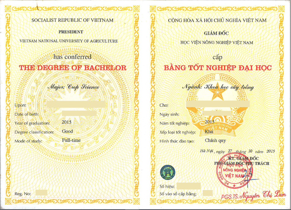 Submit (bring in person or mail) Original Certificate or Diploma that was issued to you at the time of graduation to our office. Transcript (Há»c Bạ) is required as well