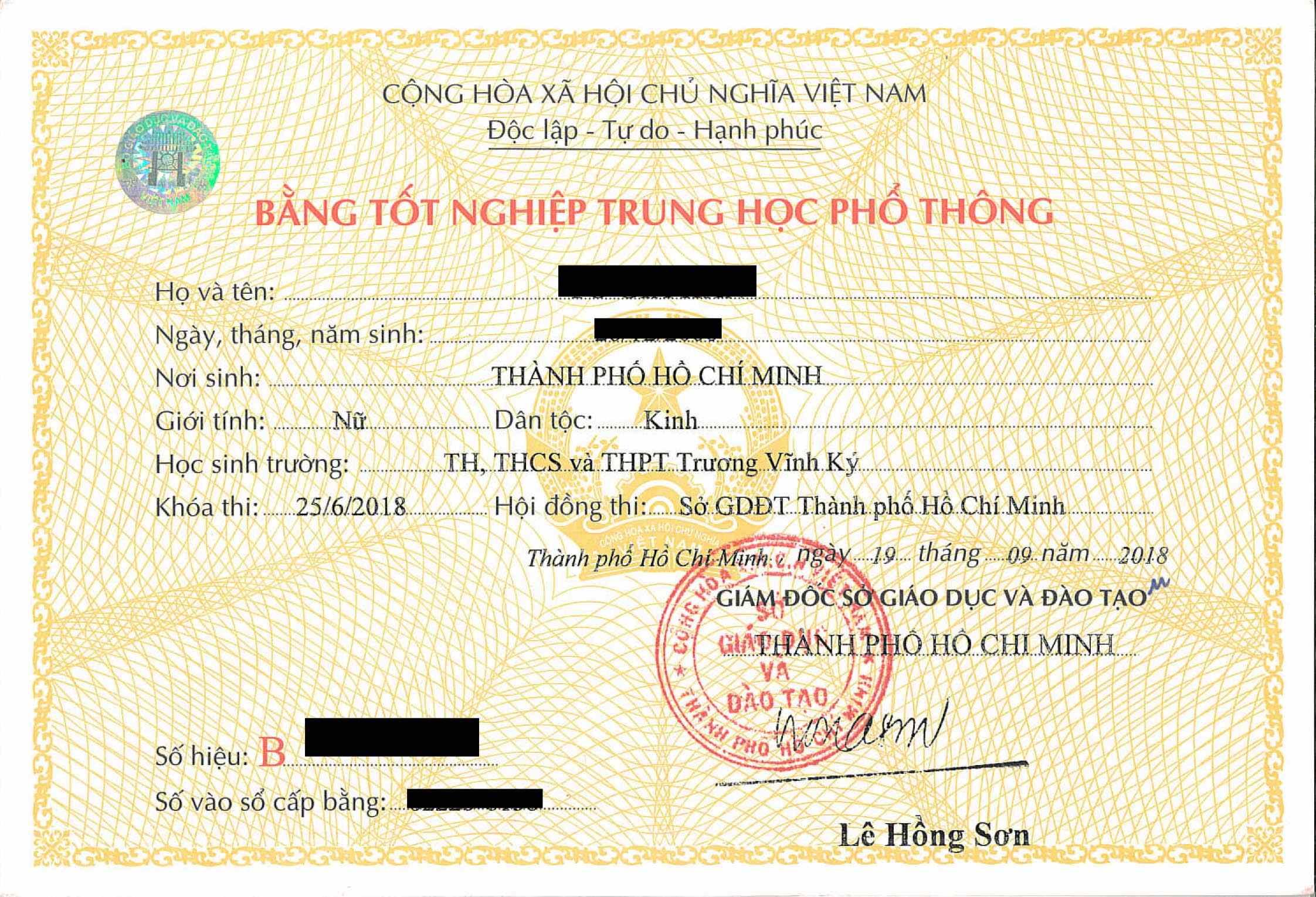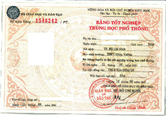 Bằng Tốt Nghiệp Trung Há»c Phổ Thông