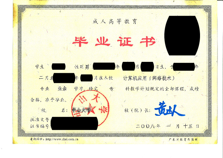 Zhuanke Program Graduation Certificate (Higher Education Institution for Working Adults)