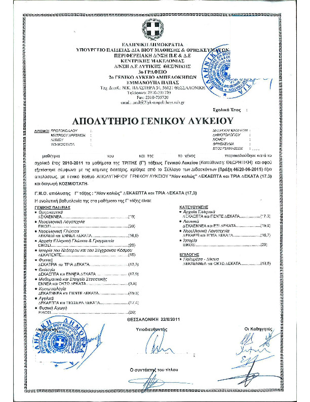 Απολυτήριο Γενικού Λυκείου (Apolytirio Genikou Lykeiou)